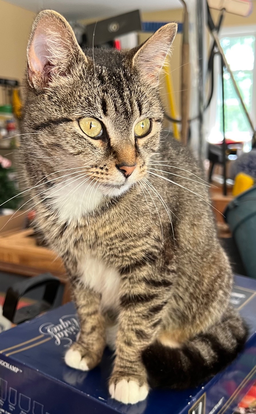 Maeve is a total lover and makes it easy to fall in love. This girl is a teeny bit shy at first, but warms up in no time! Loves to play, climb, and explore. Famous for her sneak attacks and finger licks.